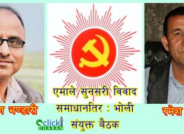 धरान: नेकपा एमाले सुनसरीको विवाद समाधान गर्ने सहमति भएको छ । महाधिवेशन नजिकिदै गएपछि दुई दिनयता एमालेका केन्द्रीय नेताहरुबीच निरन्तर छलफल भएको थियो । उक्त छलफलमभा सहमति जुटेको र भोली (बुधबार) इनरुवाको ओम साइ पार्टी प्यालेसमा दुवै कमिटीको संयुक्त बैठक बस्ने तयारी भएको संस्थापन पक्षको जिल्ला कमिट ...