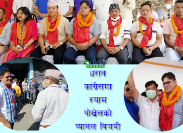 धरान: नेपाली कांग्रेस धरान उपमहानगर कार्यसमितिको निर्वाचनमा श्याम पोख्रेलको प्यानलै विजयी भएको छ । कांग्रेसको १४ औं महाधिवेशन अन्तर्गत आज (शनिबार) भएको निर्वाचनमा सभापति पदका उम्मेदवार पोख्रेलले निकटतम प्रतिद्धन्दी किसोर राईलाई ३९ मतले पराजित गरेका हुन् । विजयी पोख्रेलले २६२ मत पाएका छन् भने रा ...