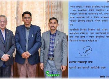 काठमाण्डौं: भुमिगत रहेको नेत्रविक्रम चन्द विप्लव नेतृत्वको नेपाल कम्युनिष्ट पार्टी र सरकारबीच आज तीन बुँदे सहमति भएको छ । वार्ता टोली गठन गरेर औपचारिकरुपमा वार्ता थालेको दोस्रो दिनमा नै सरकार र उक्त समुहबीच ३ बुँदे सहमति भएको हो । आज बिहान प्रधानमन्त्री निवास बालुवाटारमा दुवै पक्षबीच भएको वार्तामा ...