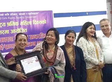 धरान: ११५ औं अन्तराष्ट्रिय श्रमिक महिला दिवसको अवसरमा कृषि, शिक्षा र स्वास्थ्य क्षेत्रमा योगदान पुर्याएका तीन महिला सम्मानित भएका छन् ।धरान उपमहानगरपालिका र महिला सञ्जाल धरानद्धारा शनिबार कार्यपालिका हलमा संयुक्तरुपमा आयोजित कार्यक्रममा तीन क्षेत्रका महिलाहरुलाई नगदसहित सम्मान गरिएको हो । कार्यक्रमम ...