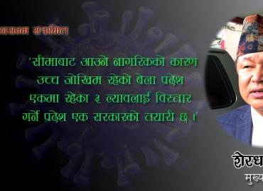 झापाः प्रदेश १ सरकारका प्रवक्ता हिक्मत कार्कीले कोरोना कहरको समय भएपनि अहिले भारतसँग जोडिएको नेपालको सीमा व्यवस्थापन गर्ने यो उचित समय भएको बताएका छन् । सीमा व्यवस्थापनबारे चन्द्रगढीमामा भएको सरोकारवालासँगको छलफलमा आन्तरिक मामिला एवंम कानुन मन्त्रीसमेत रहेका कार्कीले समाजिक र सांस्कृतिक कारणले नेपा ...