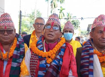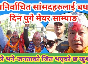 धरान ः सुनसरी क्षेत्र नं १ बाट नवनिवार्चित प्रतिनिधिसभा र प्रदेशसभा सांसदहरुलाई मेयर हर्क साम्पाङ राईले बधाई दिएका छन् । सोमबार धरान ८ स्थित निर्वाचन अधिकृतको कार्यालयमा पुगेर मेयर साम्पाङले निवार्चित सांसदहरुलाई बधाई दिएका हुन् । प्रतिनिधिसभामा अशोक राई, प्रदेशसभामा रमेश बस्नेत र विजयकुमार राई निवा ...