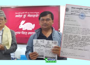 धरान: एमाले पार्टीको निर्णयसँग असन्तुष्ट भएर स्वतन्त्र उम्मेद्वारी दिएका मनोजकुमार मेन्याङ्बोले हाम्रो पार्टी नेपालसँग गरेको सम्झौता भंग गरेका छन् ।मेन्याङ्बोले बिहिबार एक प्रेश विज्ञप्ती जारी गर्दै चुनाव चिह्न लौरो भएको उक्त पार्टीसँगको सम्झौता भंग गरेको घोषणा गरेका हुन् । मेन्याङ्बोले यसअघि उक्त प ...