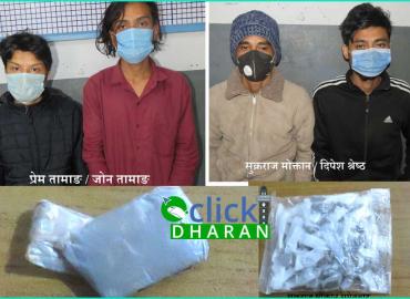 धरान: धरानबाट खैरो हेरोइनसहित ४ जना युवाहरु पक्राउ परेका छन् । ईलाका प्रहरी कार्यालय धरानले उनीहरुलाई हिजो मंगलबार अलग अलग समय र स्थानमा खैरो हेरोइनसहित पक्राउ गरेको हो । हिजो दिउँसो ३ बजेर १० मिनेटमा धरान ८ अरुण टोलका ३७ बर्षीय शुक्रराज मोक्रान र धरान १८ का ३० बर्षीय दिपेश श्रेष्ठको साथबाट खैरो ह ...