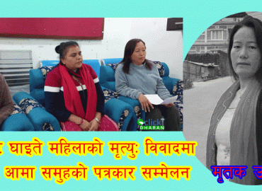 धरान: कुटपिटबाट घाइते भएकी धरान १३ मा डेरा गरि बस्ने उषा राईको उपचारको क्रममा मृत्यु भएको घटनामा महिला सञ्जाल धरानले सरोकारवाला निकायहरुमा ध्यानाकर्षण गराएको छ । धरानमा महिलाहरु आवद्ध संघसंस्थाहरुको छाता संस्थाकोरुपमा रहेको महिला सञ्जालले ईलाका प्रहरी, इलाका प्रशासन र उपमहानगरपालिकामा न् ...