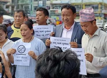 धरान ः धरानका मेयर हर्क साम्पाङ र उपमेयर अइन्द्रबिक्रम बेघा शुक्रबार दिउँसो करिब ५ बजेतिर भानुचोकमा झुल्किए । दुवैको हातमा प्ले कार्ड थियो, जसमा लागुऔषधविरुद्ध नारा लेखिएको थियो । लागुऔषध तथा दुव्र्यसनबाट प्रताडित छ धरान । यहाँका युवाहरु कुलत छन् भने कारोबारी पनि भएका छन् । त्यसैले धरानका युवाहरुलाई ...
