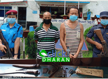 धरान: प्रहरीले मोरङको केराबारीबाट हतियारसहित दुई जनालाई पक्राउ गरेको छ । मोरङ प्रहरीका अनुसार हिजो साँझ करिब साढे ५ बजे केराबारी गाउँपालिका ९ देवीझोडाका ५९ बर्षीय गणेश लिम्बुको घरबाट हतियार वरामद भएको हो । ईलाका प्रहरी कार्यालय बेलबारीको टोलीले लिम्बुको घरमा खानतलासी गर्दा कटुवा पेस्तोल एक थान ...