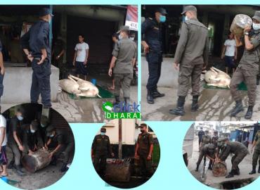 धरान: ड्रेन माथि नै सुँगुरको मासु काटेर बिक्री गर्ने एक मासु पसलको सामाग्रीहरु धरानको नगर प्रहरीले नियन्त्रणमा लिएको छ ।धरान १५ स्थित पिण्डेश्वर चोकबाट आज बिहान अनुगमन गरि नगर प्रहरीले मासु व्यापारीको सामानहरु नियन्त्रणमा लिएको हो । स्थानीयले गुनासो गरेपछि पटक पटक मौखिक र पत्राचारसमेत गरे पनि अटेर ग ...