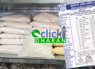 धरान: सुनसरी उद्योग वाणिज्य संघले धरानमा बुधबार लागु हुने खाद्यान्नको मुल्य सुची जारी गरेको छ । मंगलबार साँझ सार्वजनिक गरेको खाद्यान्नको मुल्यसुची अनुसार विभिन्न ८ प्रकारको खाद्यन्नको मुल्य घटेको छ । केही खाद्य बस्तुको मुल्य भने यथावत छ । संघका बजार अनुगमन तथा आपूर्ति समन्वय समितिका संयोजक शिवराज श ...