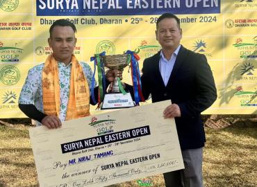धरान: सुर्य नेपाल इष्टर्न ओपन गल्फ प्रतियोगितामा धरानका युवा व्यवसायिक गल्फर निरज तामाङ च्याम्पियन भएका छन् । पार ७० को धरान गल्फ कोर्षमा शुक्रबार सम्पन्न भएको मुख्य स्पर्धामा कुल १७ अण्डर १९३ स्कोरको रेकर्ड बनाउदै निरज च्याम्पियन भएका हुन् । तेस्रो तथा फाइनल खेलमा शुक्रबार निरजले ५ अण्डर ६५ स् ...