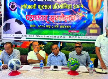 धरान: आगामी असोज पहिलो साता धरानमा तीन दिने तेस्रो आमन्त्रित अन्तराष्ट्रिय सन्जिवनी फुटसल प्रतियोगिता हुने भएको छ । धरान १३ स्थित सन्जिवनी केन्द्रले आइतबार पत्रकार सम्मेलन गर्दै असोज ३,४ र ५ गते प्रतियोगिता आयोजना गर्ने जानकारी दिएको हो । दुर्व्यसनीमा फसेका तथा छुटेका युवहरुलाई सामाजिकीकरण गर् ...