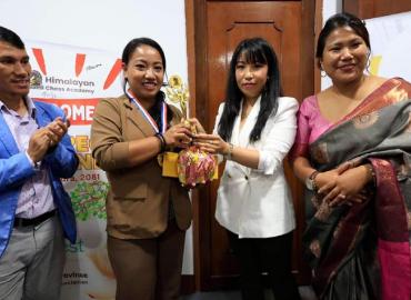 काठमाडौं: हरितालिका तीजको अवसरमा हिमालयन चेस एकेडेमीद्वारा आयोजित ‘हिमालयन तीज चेस टोर्नी’ को उपाधि शान्ति धिमालले जितेकी छन् । उनले प्रतियोगितामा शतप्रतिशत जित हासिल गर्दै ट्रफी कब्जा गरेकी हुन् ।स्वीस प्रणालीको आधारमा पाँच चरणमा सञ्चालित र्यापिड चेसमा १६५७ रेटिङकी शान्ति पहिलो चरणमा प्रियंशा प्रधा ...