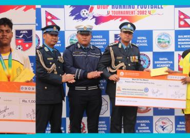 धरान: २० औं ललित–अम्बर डिपो कप २०८२ अन्तर्गतको ‘लेट दिलकुमार प्लेट च्याम्पियनसिप कप–२०८२’ मा हिमशिखर बोर्डिङ स्कुल इटहरीले उपाधि जितेको छ । आज (बुधबार) भएको फाइनल खेलमा प्रभात इङ्लिस बोर्डिङ स्कुल धरान–१२ लाई सडन डेथमा पराजित गर्दै उपाधि जितेको हो । निर्धारित समयको खेल र टाइब्रेकरमा पनि खेलको न ...