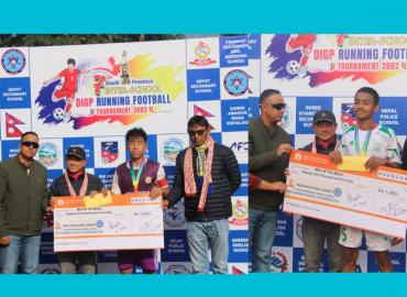धरान: सातौं कोशी प्रदेश अन्तर विद्यालय डिआईजिपी रनिङ कप फुटबल प्रतियोगितामा बाल्मिकी मेमोरियल सेकेण्डरी स्कुल, मोरङ विजयी भएको छ ।प्रतियोगितामा बिहीबार सम्पन्न खेलमा निधी सेकेण्डरी स्कुल, विर्तामोड, झापालाई २-१ गोल अन्तरले पराजित गर्यो । बाल्मिकीको जितमा पहिलो हाफको एक मिनेटमै जर्सी नं। २ का साङ्के ...