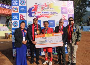 धरान: २० औं ललित अम्बर डिपो कप २०८२ मा आयोजक टिम च्याम्पियन बनेको छ । धरान १८ स्थित डिपो स्कुलको खेल मैदानमा आज (बिहिबार) सम्पन्न फाइनल खेलमा धरान वडा नं ५ स्थित धरान इङ्लिस बोर्डिङ स्कुललाई १–० को झिनो गोलअन्तरले हराउदै आयोजक च्याम्पियन बनेको हो । उपाधिबाट बञ्चित भएपनि पहिलो सहभागितामै उपविजेत ...