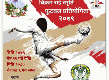 धरान: भोली बुधबारदेखि तेस्रो धरान भेट्रान विक्रम राई स्मृति फुटबल प्रतियोगिता हुने भएको छ । धरान भेट्रान फुटबल क्लबको आयोजनामा धरान १६ स्थित रंगशालामा प्रतियोगिता शुरु हुने भएको हो । यो प्रतियोगिता स्वर्गीय फुटबल खेलाडी बिक्रम राईको स्मृतिमा आयोजना गरिएको हो । प्रतियोगिताको विजेतालाई नगद १ लाख ...