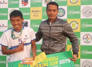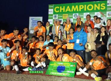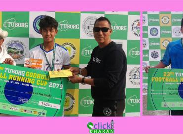 धरान: २३ औं टुबोर्ग गोधुली फुटबल रनिङ कपको उपाधी वडा नं १७ ले जितेको छ । शनिबार भएको फाइनलमा वडा नं. १५ लाई २–१ गोल अन्तरले हराउदै वडा १७ चौथो पटक च्याम्पियन भएको हो । उपाधीसँगै वडा १७ ले नगद १ लाख ५० हजार, ट्रफि, मेडल पुरस्कार प्राप्त गरेको छ । उपविजेता बनेको वडा १५ ले नगद ७५ हजार, ट्रफि, मेडल ...