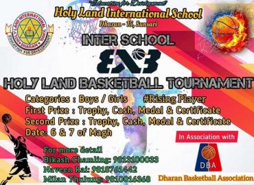 धरान: धरान १५ स्थित होलिल्याण्ड स्कुलले अन्तर विद्यालय महिला पुरुष थ्री बाई थ्री बास्केटवल प्रतियोगिता आयोजना गर्ने भएको छ । स्कुलले बुधबार धरान १० स्थित कफि पब एण्ड रेष्टोमा पत्रकार सम्मेलन गर्दै फागुन ७ र ८ गते प्रतियोगिता आयोजना गर्ने जानकारी दिएको हो । प्रतियोगिता स्कुलको बास्केटवल कोर्टमा ...