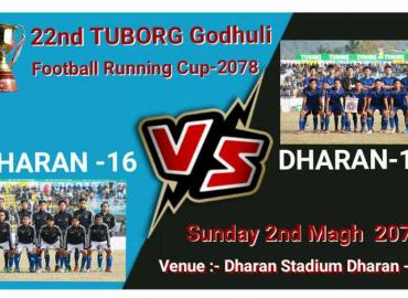 धरान: धरानको चर्चित फुटवल प्रतियोगिता २२ औं गोधुली टुबोर्ग रनिङ कपको फाइनल खेल आज हुदैछ । धरान १६ स्थित रंगशालामा हुने फाइनल खेलमा वडा नं १६ र वडा नं १३ उपाधिको लागि मैदानमा भिड्दैछन् । फाइनल खेल दिउँसो १ बजे हुने आयोजकले जनाएको छ । वडा नं १६ गत बर्ष पनि फाइनल खेलेको टोली हो । गएको सँस्करणमा फ ...
