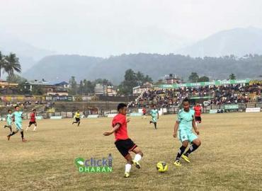 धरान: २१ औं गोधुली टुबोर्ग रनिङ फुटबल प्रतियोगितामा साविक विजेता धरान वडा नं १७ विजयी हुदै सेमीफाइनल प्रवेश गरेको छ । धरान १६ स्थित रंगशालामा सोमबार सम्पन्न क्वार्टरफाइनल खेलमा वडा नं १३ लाई २–१ गोलअन्तरले हराउदै वडा नं १७ सेमीफाइलन प्रवेश गरेको छ । खेलमा अग्रता भने वडा नं १३ ले लिएको थियो । पहिलो ह ...