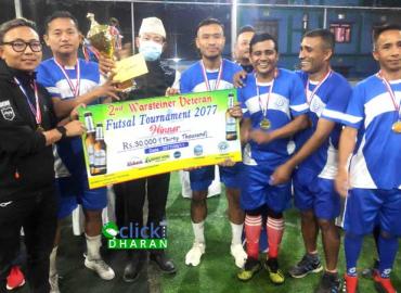 धरान: दोस्रो वार्सटाइनर भेट्रान फुटसल प्रतियोगिताको उपाधि झापाको भेट्रान फुटसल क्लबले जितेको छ । धरान ८ स्थित बिग फुटसलमा आयोजित प्रतियोगितामा धरानको बार्बर सप फुटसल भेट्रानलाई फाइनलमा ७-२ गोलअन्तरले हराउदै झापाले उपाधि जितेको हा । उपाधिसँगै झापाले नगद ३० हजार र ट्रफी पनि हात पारेको छ । उपविजेता बा ...