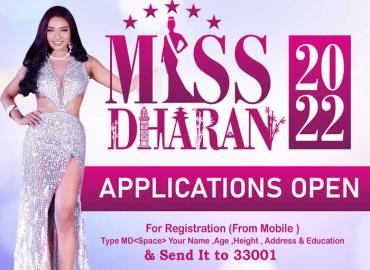 धरान: धरानमा सौन्दर्य प्रतियोगिता 'मिस धरान २०२२' आयोजना हुने भएको छ। धरानका युवतीहरुको प्रतिभा प्रष्फुटनको लागि फेशन हब नेपाल तथा ब्ल्याक पिग इन्टरटेनमेन्टको आयोजनामा मिस धरान २०२२ हुन लागेको हो । कम्तीमा एसईई उतिर्ण तथा १२ कक्षा पढ्दै गरेका धरानका युवतीहरु सहभागी हुन पाउने छन् । ब्ल्याक ...