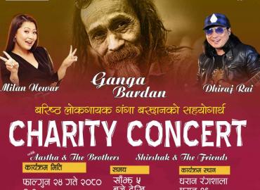 धरान: बरिष्ठ लोकगायक गंगा बरदानलाई आर्थिक सहयोगार्थ बिहिबार धरानमा च्यारिटी कन्सर्ट हुदैछ । धरान १६ स्थित रंगशालामा जारी एक्स्पोस्थलमा नै भोली (बिहिबार) च्यारिटी कन्सर्ट हुनेछ । यो सांगीतिक कार्यक्रम गायक गंगा बरदानमा समर्पित भएर आयोजना हुन लागेको हो । कन्सर्टमा चर्चित पप गायक धीरज राई र चर्चित ...