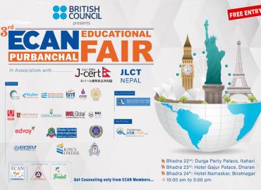 इटहरी: बुधबार (भोली) देखि नेपाल शैक्षिक परामर्श संघ पूर्वाञ्चल (ई–क्यान) ले शैक्षिक मेला गर्ने भएको छ ।ई–क्यान पूर्वाञ्चलका अध्यक्ष प्रकाश लकान्द्रीका अनुसार बुधबार बिहान ८ बजे इटहरीको दुर्गा पार्टी प्यालेसमा शैक्षिक मेलाको उद्घाटन हुनेछ । विशेषगरी युवा विद्यार्थी वर्गलाई लक्षित गरी शैक्षिक मेला आयो ...