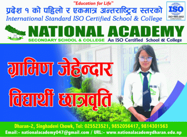 धरान: नेशनल एकेडेमी धरानले कक्षा ११ मा ग्रामीण भेगका जेहेन्दार विद्यार्थीहरुलाई छात्रवृत्ति दिने घोषणा गरेको छ । शैक्षिक संस्थाहरु मध्ये प्रदेश नं. १ मा पहिलो आईएसओ प्रमाणपत्र लिन सफल नेशनल एकेडेमीले २१ जना ग्रामीण भेगका विद्यार्थीलाई छात्रवृत्ति दिने घोषणा गरेको हो । एकेडेमीका प्राचार्य श्रीशीशा रा ...