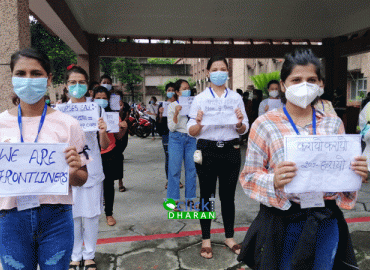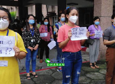 धरान: कोभिड १९ उपचारमा खटिएका नर्स, हेल्थ एड र हेल्परहरुले वीपी कोइराला स्वास्थ्य विज्ञान प्रतिष्ठान धरानका उपकुलपति कार्यालयअघि धर्ना दिइरहेका छन् । विभिन्न १६ बुँदे माग राखेका उनीहरुले बिहानैदेखि उपकुलपति डा.ज्ञानेन्द्र गिरीको कार्यलय परिसरमा धर्ना दिइरहेका हुन् । बाहिर धर्ना कार्यक्रम जारी रहदा ...