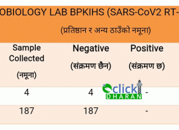धरान: लकडाउनको बेला पनि लुकिछिपी भारतबाट आएका सब्जी व्यापारीको कोरोना परीक्षणको रिपोर्ट नेगेटिभ आएको छ । धरान १५ भानुमार्गका ती व्यापारीको हिजो सोमबार वीपी कोइराला स्वास्थ्य विज्ञान प्रतिष्ठानको ल्याबमा थ्रोट स्वाबको नमुना लिइएको थियो । उक्त नमुनाको आज रिपोर्ट नेगेटिभ आएको हो । ‘उनको रिपोर्ट ...
