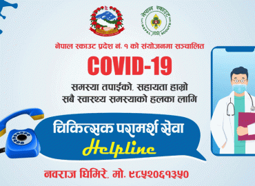 धरान: नेपाल स्काउट १ नम्बर प्रदेश तदर्थ समितिको पहलमा बिशेषज्ञ चिकित्सकद्घारा स्वास्थ्य परामर्श सेवा दिने उद्देश्यले हेल्पलाइन सेवा सञ्चालनमा आएको छ । स्काउटले प्रदेश १ का विभिन्न अस्पतालमा कार्यरत बिशेषज्ञ चिकित्सकहरुसहितको 'डक्टर अन कल' हेल्पलाइन सेवा सञ्चालनमा ल्याएको हो । बिशेष गरि लकडाउनक ...