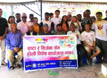 धरान: होली पर्वको अवसरमा शुक्रबार धरान १३ स्थित अमर सेवा समाजले श्रष्टा र सृर्जनासँग होली कार्यक्रम आयोजना गरि मनायो । एक आपसमा रंग दलेर खुशी साटासाट गरि मनाउने पर्वलाई फरक तरिकाले मनाउने क्रममा समाजले श्रष्टा र सृर्जनासँग होली कार्यक्रम गरि मनाएको हो । कार्यक्रममा धरानका कवि तथा श्रष्टाहरुले क ...
