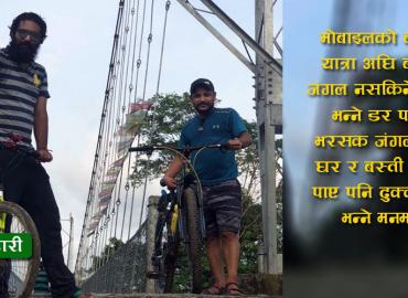धरानः लामो समय वेलायत बसेर अध्ययनपश्चात नेपाल फर्किएका उमेश भण्डारी घुुम्नमा सौखिन छन् । सन् २०१७ मा नेपाल फर्किएका उनी पहिले देश घुुम्ने योजना बनाए, अनि काम खोज्ने । धरान जानकी टोलका उनी नेपाल घुुम्ने धोको वेलायत बस्दै बनाएका थिए । प्रायः एक्लै घुुम्न रुचाउने भएपनि घुुम्ने योजना साथीहरुले थाहा पा ...