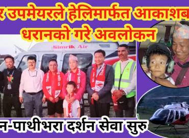 धरान: धरानका मेयर हर्क साम्पाङ र उपमेयर अइन्द्रबिक्रम बेघाले हेलिकप्टरमार्फत धरानको साँझको दृष्यावलोकन गरेका छन् । धरान होलिडेजले सिम्रिक एयरको हेलिमार्फत मेयर साम्पाङ र उपमेयर बेघालाई आइतबार साँझ धरानको फन फ्लाइट गराएको हो । मेयर उपमेयरसँगै धरानका केही सञ्चारकर्मीहरुले पनि फन फ्लाइट गर्दै धरा ...
