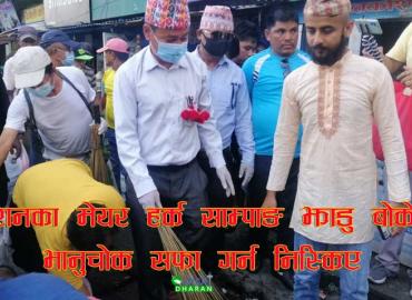 धरान:धरानका मेयर हर्क साम्पाङ बिहिबार हातमा झाडु बोकेर भानुचोकमा पुगे । उनले अघिल्लो दिन नै दिउँसो ३ बजे भानुचोक सफाई कार्यक्रमबारे फेसबुक पेजबाट आह्वान गरेका थिए । उनका समर्थकहरुका साथै सेवक अभियानको टोली पनि सफाई कार्यक्रमको लागि पुगिसकेका थिए । बर्षाको कारण केही ढिलाई भएको सफाई अभियानमा मेय ...