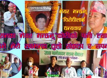 धरान: धरानका मेयर हर्कराज राई (साम्पाङ)ले कोशीको पानी ल्याएर धरानबासीहरुलाई खुवाउने आफ्नो सबभन्दा ठुलो संकल्प र सपना भएको बताएका छन् । जनसरोकार मञ्च नेपालद्धारा आइतबार आयोजित बधाई तथा शुभकामना कार्यक्रमलाई सम्बोधन गर्दै मेयर राईले यस्तो बताएका हुन् । उनले कोशीबाट पानी नल्याएसम्म धरानको बढ्दो जनसंख्य ...