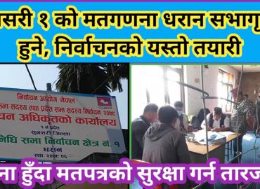 धरान: मंसिर ४ गते हुन लागेको प्रतिनिधिसभा तथा प्रदेशसभाको निर्वाचन अन्तर्गत सुनसरी क्षेत्र नं १ को मतगणना धरान ८ स्थित सभागृहमा नै हुने भएको छ । सभागृहमा निर्वाचन अधिकृतको कार्यालय स्थापना भएर निर्वाचनको सम्पुर्ण प्रक्रियाहरु त्यहीबाट भइरहेको छ । मतदान पश्चात मतपेटिकाहरु संलकन गरेर सभागृहमा नै ...