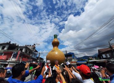 धरान: धरानको वडा नं १८ स्थित बुद्धचोकमा किरात जातिको महत्वपुर्ण साँस्कृतिक सामाग्री वाबु(चिण्डो)को प्रतिमा अनावरण गरिएको छ । आज बिहान एक कार्यक्रमबीच प्रमुख अतिथि एवं भाषाविद् प्रा.डा.टंक न्यौपाने रिबन काटेर प्रतिमाको अनावरण गरेका हुन् । अनावरण गर्नुअघि नाक्छोङ(धामी)ले मुन्धुम गरेका थिए । उनलाई किर ...