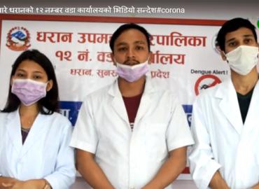 विश्वलाई नै कोरोनाले सताइरहेको बेला यसको संक्रमणबाट आमजनतालाई कसरी जोगाउने भनेर धरान उपमहानगरपालिका १२ नम्बर वडा कार्यालयको जनहितको लागि भिडियो सन्देश तयार पारेको छ । यो भिडियोमा केन्द्रीय प्रविधि क्याम्पस हात्तिसारको माइक्रोबायोलोजी विभाग र न्युट्रिसनको सहकार्यमा तयार पारिएको हो । यसभिडियोमा कोरोना ...