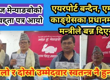 धरान: मंसिर ४ गतेको प्रतिनिधिसभा निर्वाचनमा स्वतन्त्र उम्मेद्वार रहेका पुर्वमेयर मनोजकुमार मेन्याङ्बोले नेपाली कांग्रेस र एमालेका प्रधानमन्त्री, मन्त्रीहरुको कारण धरानमा एयरपोर्ट बन्न नसकेको आरोप लगाएका छन् । पत्रकार सम्मेलन गरेर आफ्नो चुनावी प्रतिवद्धता पत्र सार्वजनिक गदै मेन्याङ्बोले यस्तो आरोप लग ...