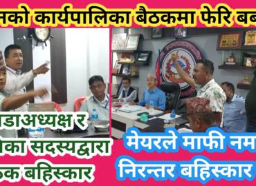 धरान: धरानका मेयर हर्क साम्पाङले कार्यपालिका सदस्यलाई बोल्न रोक्दै बाहिर जानु भनेपछि कार्यपालिका बैठक बिथोलिएको छ । सप्तरंगी पार्कलाई बहुसाँस्कृतिक पार्क बनाउने प्रस्तावमा कार्यपालिका सदस्य अनुप देवानले धारणा राख्दै पहिलाकै डिपिआर अनुसार काम अघि बढाउनुपर्ने भन्दै अन्य कार्यपालिका सदस्यहरुलाई पनि सोह ...