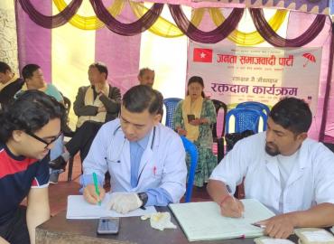 धरान: ‘रक्तदान नै जिवन दान’ भन्ने मुल नाराका साथ जनता समाजवादी पार्टी (जसपा) वडा कार्यसमिती धरान १३ ले रक्तदान कार्यक्रम आयोजना गरेको छ । नेपाल रेडक्रस सोसाइटी सुनसरी जिल्ला शाखाको प्राविधिक सहयोगमा शनिबार फुस्रे चोकमा रक्तदान कार्यक्रम आयोजना भएको हो । उक्त रक्तदानमा ३५ पिण्ट रगत सकलन भएको जसप ...
