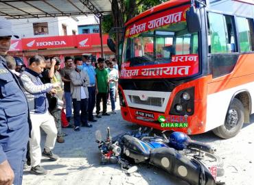धरान: धरान ८ स्थित जय श्री अटल पम्पअघि बसले मोटरसाइकललाई ठक्कर दिदा ३ जना घाइते भएका छन् । घाइते मध्ये एक जना गम्भीर छन् ।कोशी राजमार्गमा धरान बजारतर्फ आइरहेको मे १ ख ३१९६ नम्बरको मौषम यातायातको बसले सोही दिसामा अगाडि गइरहेको को १९ प ८३७१ नम्बरको मोटरसाइकललाई पछाडिबाट ठक्कर दिएको थियो । बसको ठक्करबा ...