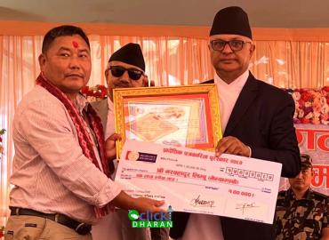 धरान: पत्रकार प्रदीप मेन्याङ्बोलाई प्रदेश सरकारले नगद १ लाख राशीसहित प्रादेशिक पत्रकारिता पुरस्कार प्रदान गरेको छ । गणतन्त्र दिवसको अवसरमा आज (सोमबार) प्रदेश सरकारले पत्रकार मेन्याङ्बोलाई प्रादेशिक पुरस्कार प्रदान गरेको हो । प्रदेश राजधानी विराटनगरमा आयोजित बिशेष समारोहमा मुख्यमन्त्री हिक्मत क ...